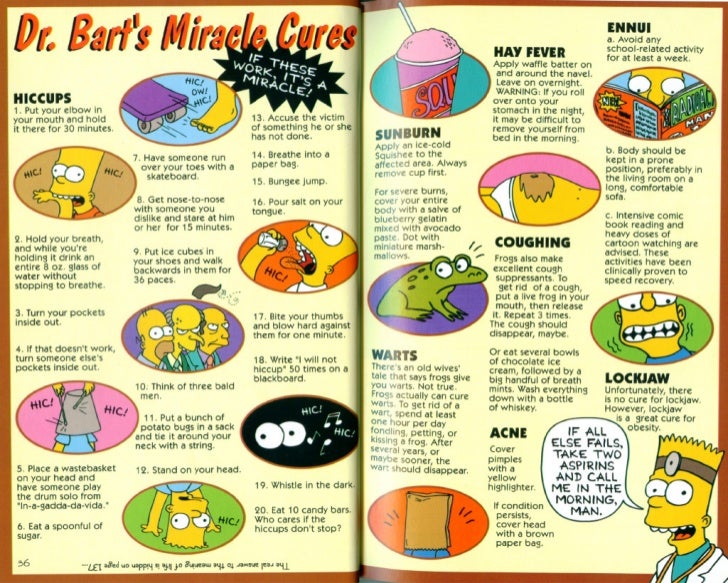 The book is supposedly meant to give helpful tips and advice on how to cope with life as experienced by Bart Simpson. Product prices and availability are accurate as of the datetime indicated and are subject to change. Including such gems as Dr Barts Miracle Cures Homers Dozen-Donut-A-Day Diet and the beauty secrets of Marge Never pluck protruding nose hair death may result.